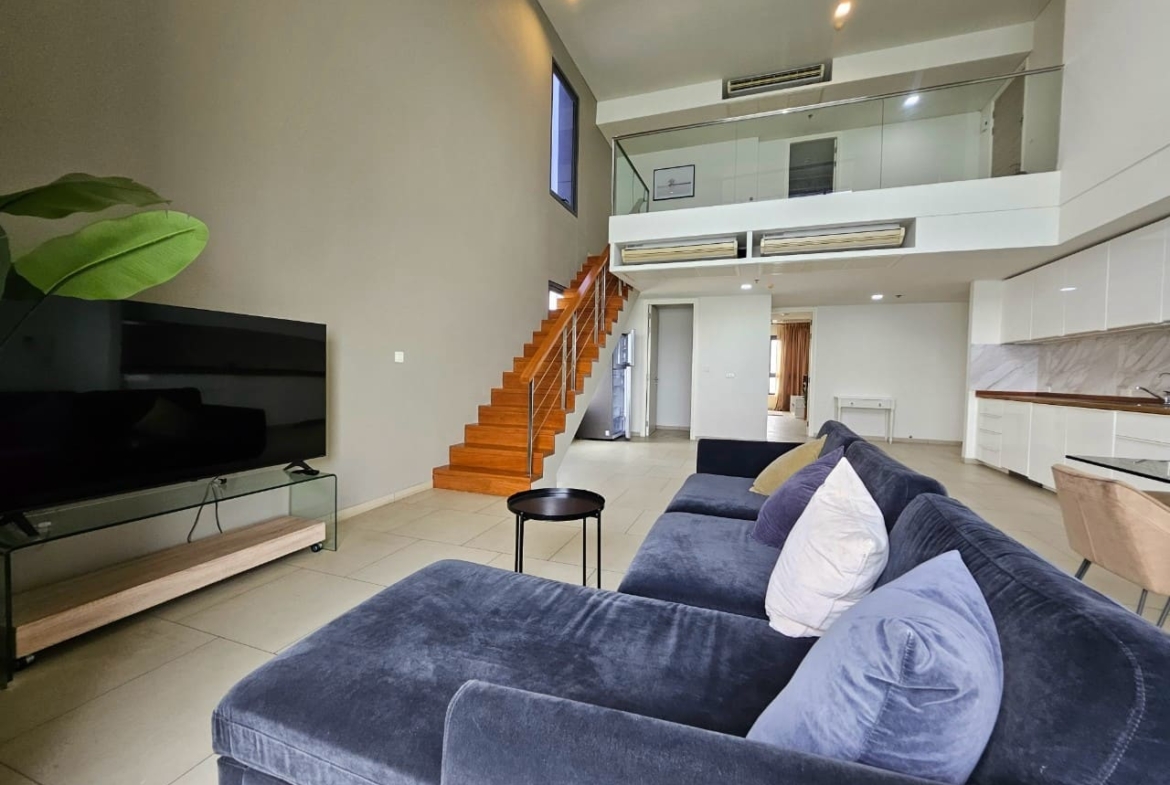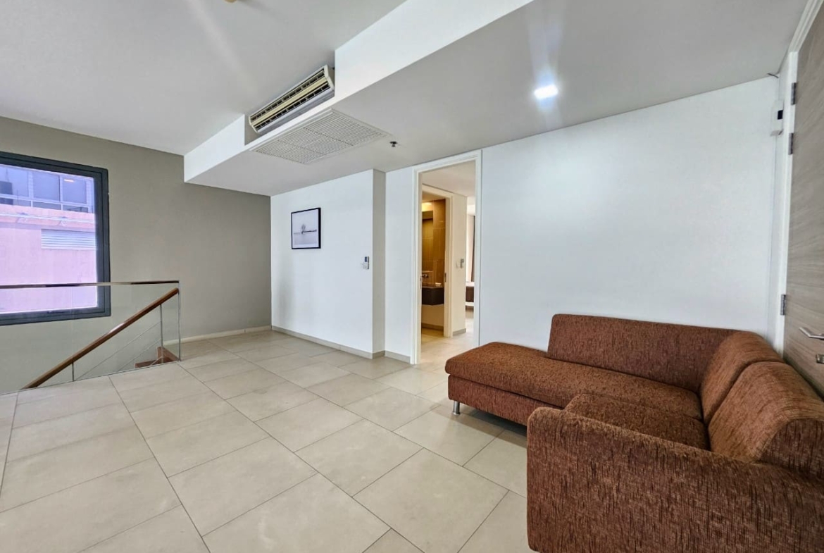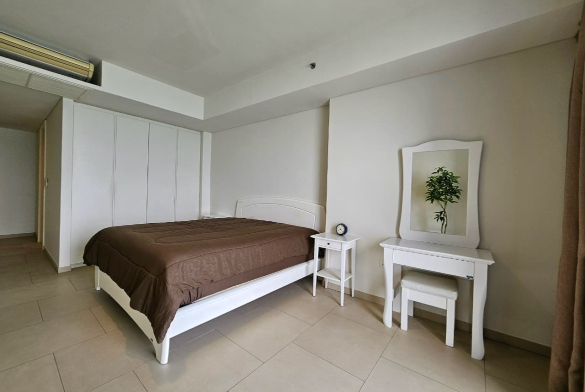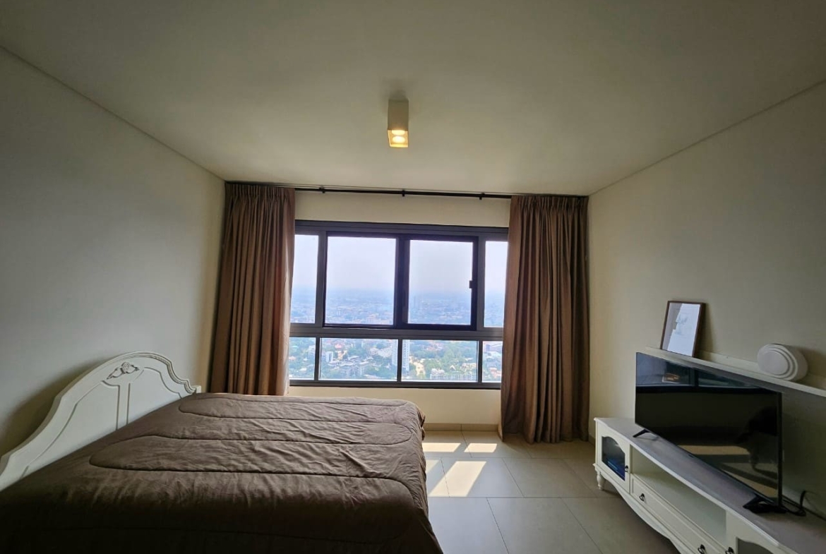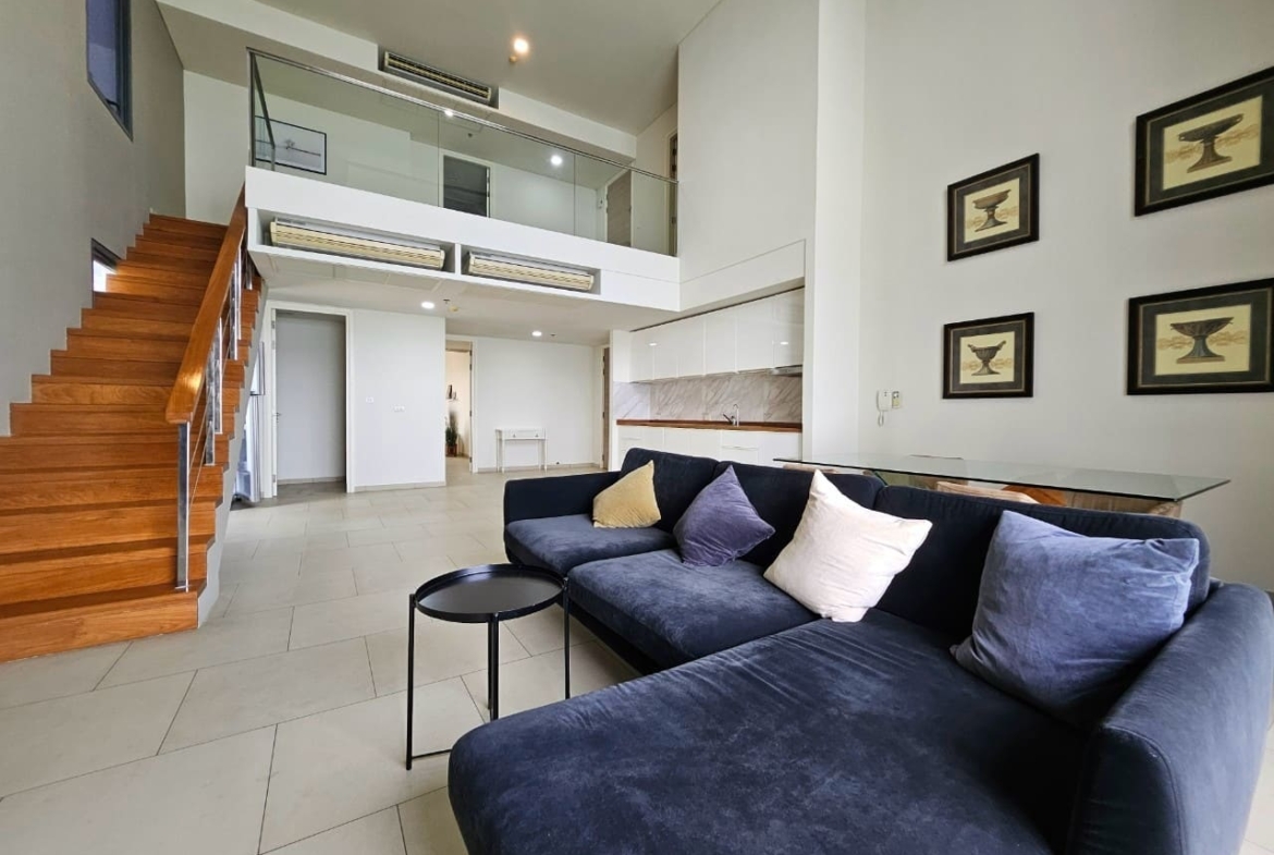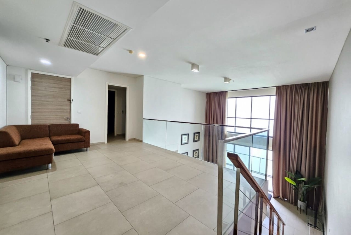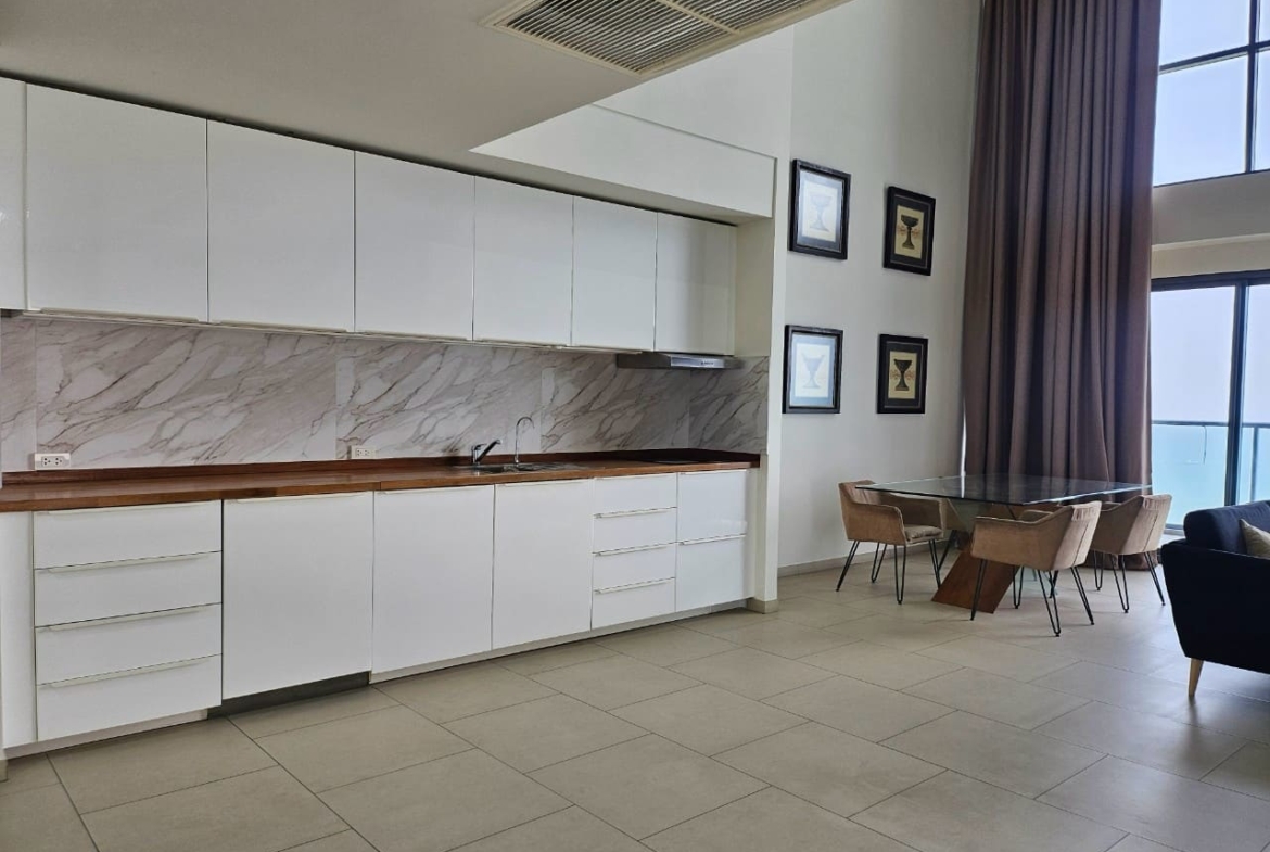 A penthouse with three bedrooms, offering a stunning sea view. It features simple and elegant decoration, located just 5 minutes away from a shopping mall.