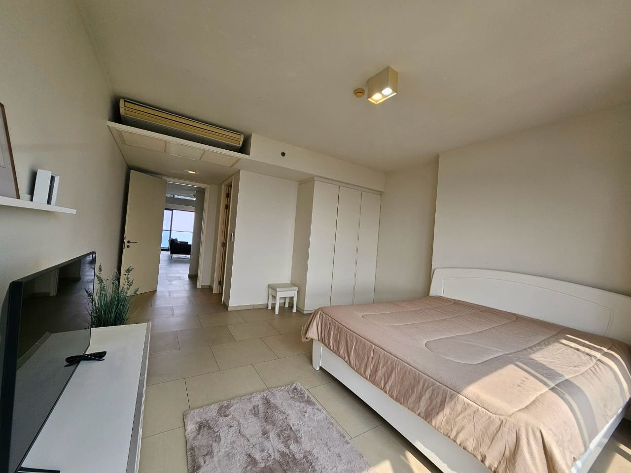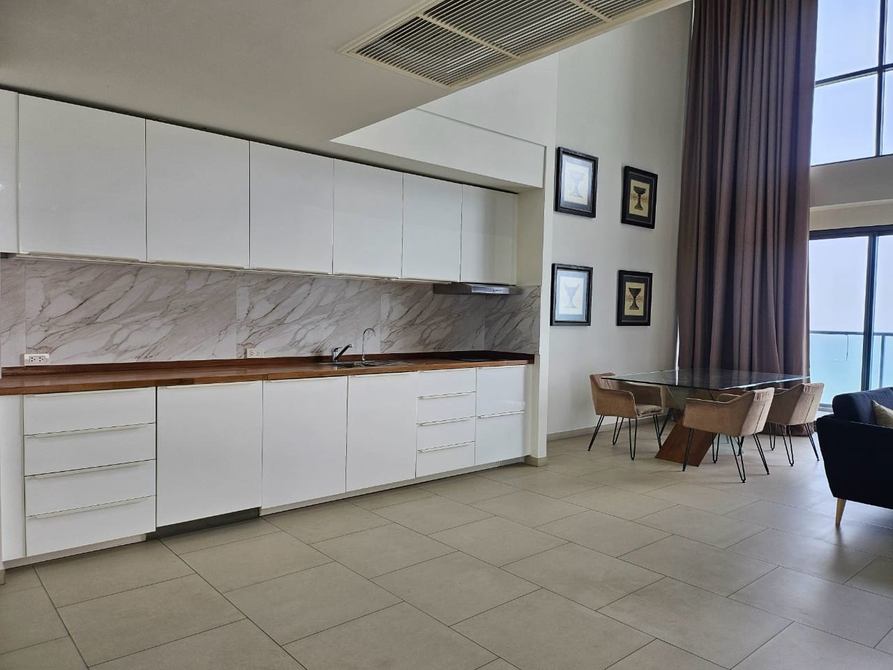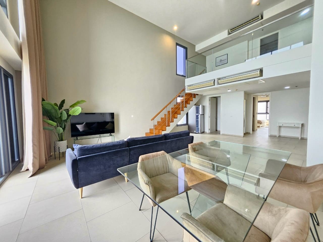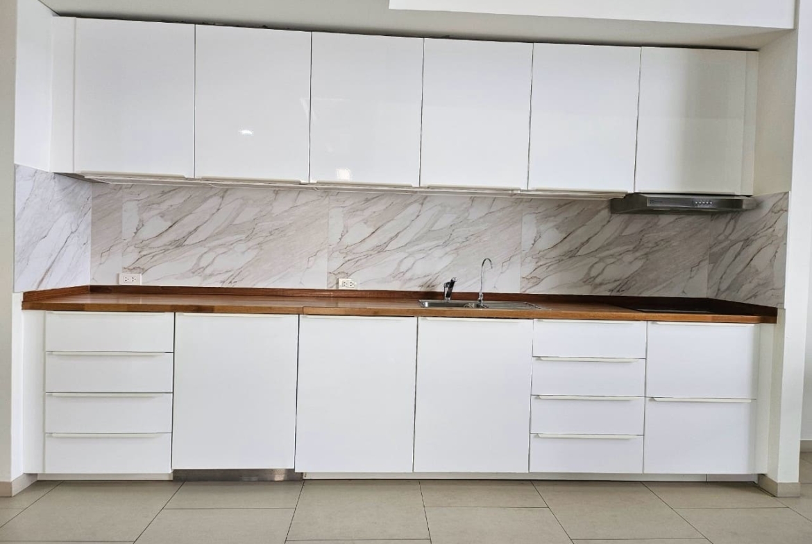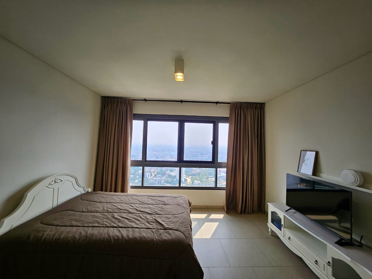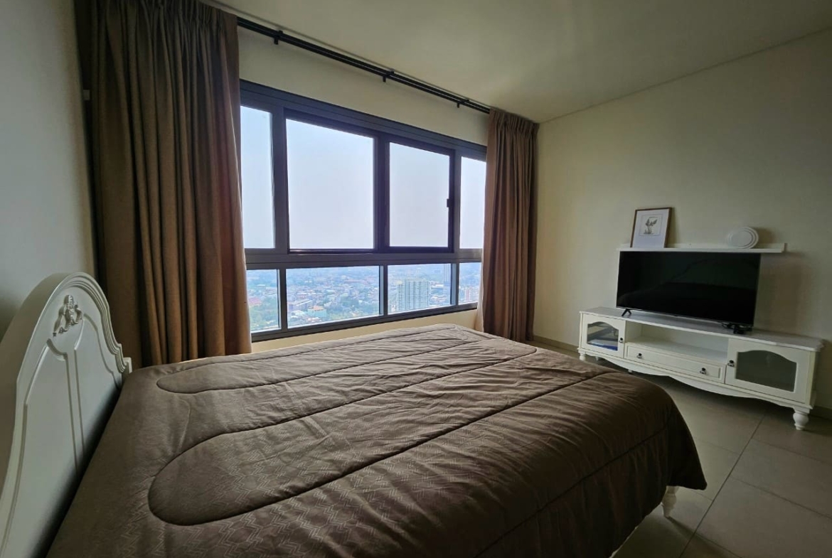 A penthouse with three bedrooms, offering a stunning sea view. It features simple and elegant decoration, located just 5 minutes away from a shopping mall.