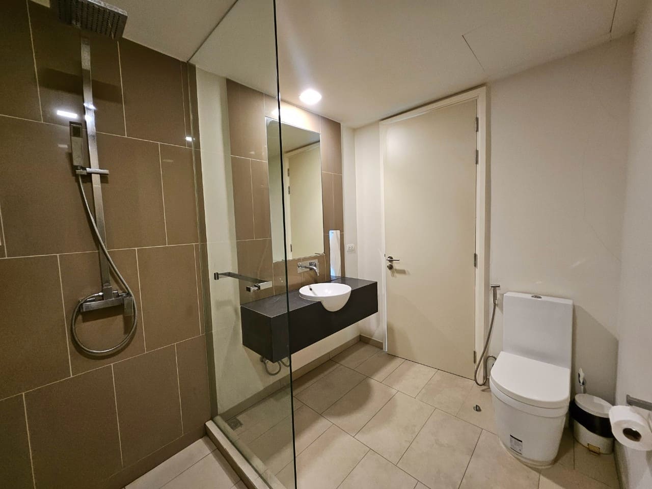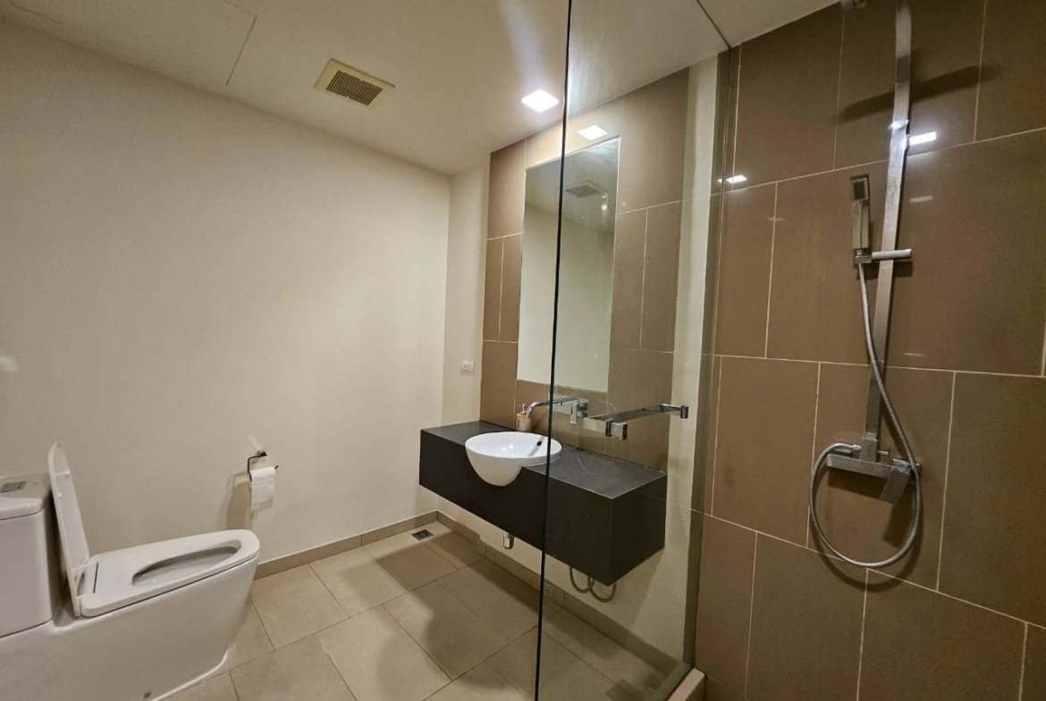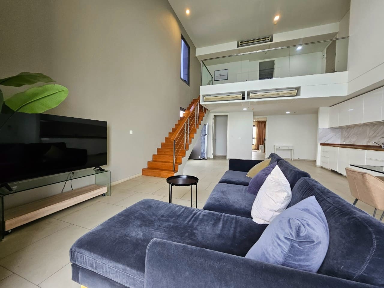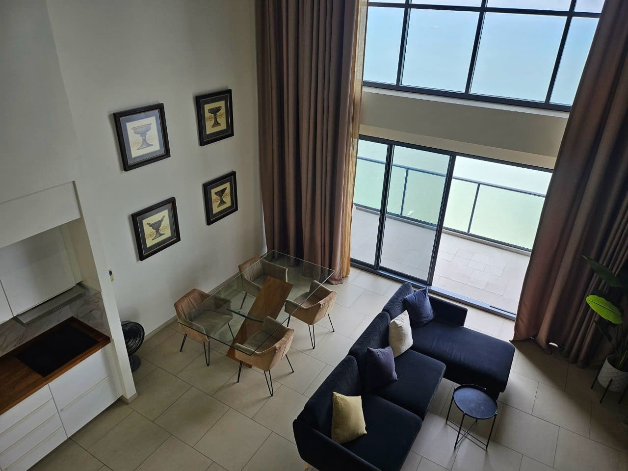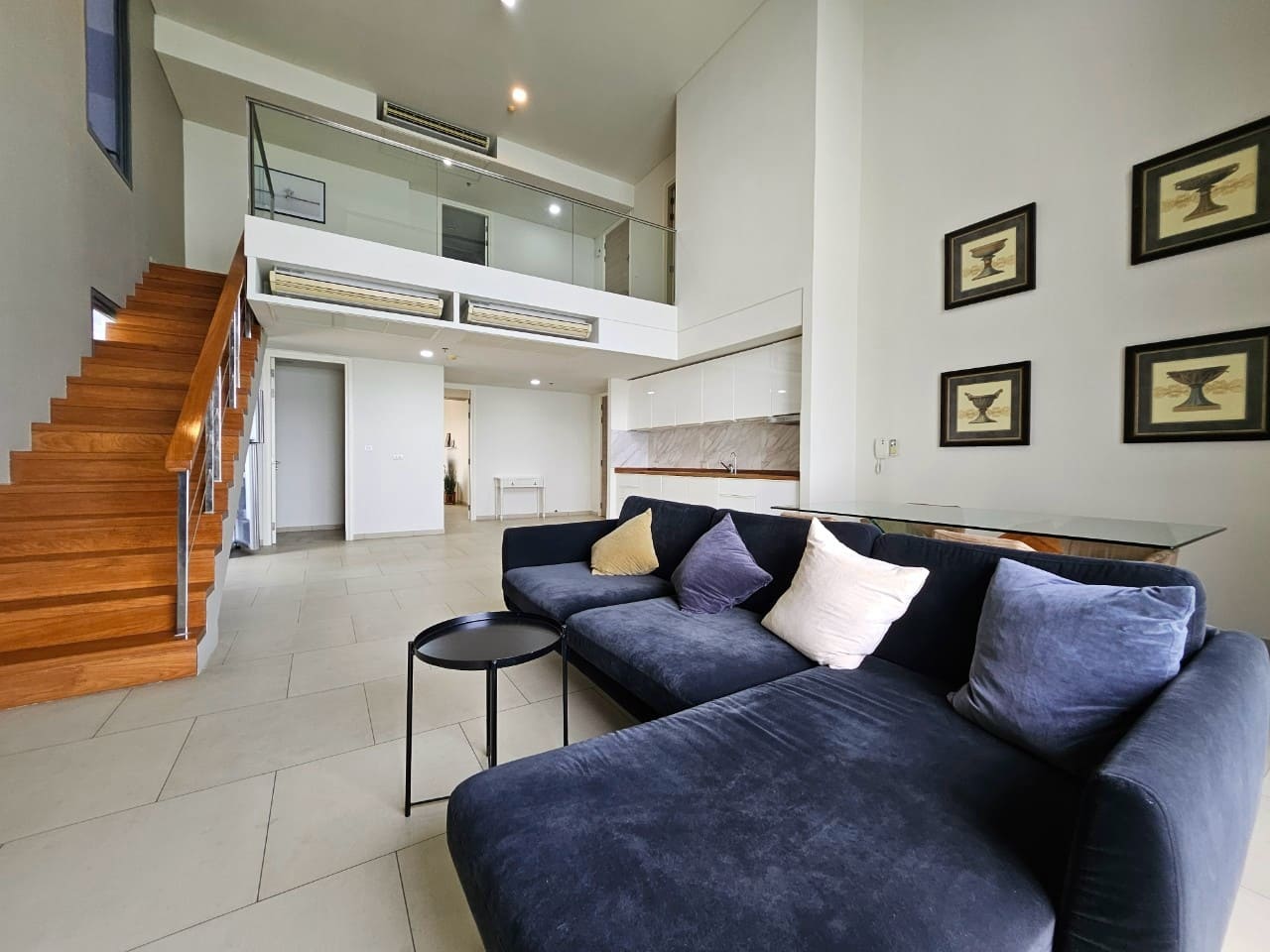 A penthouse with three bedrooms, offering a stunning sea view. It features simple and elegant decoration, located just 5 minutes away from a shopping mall.