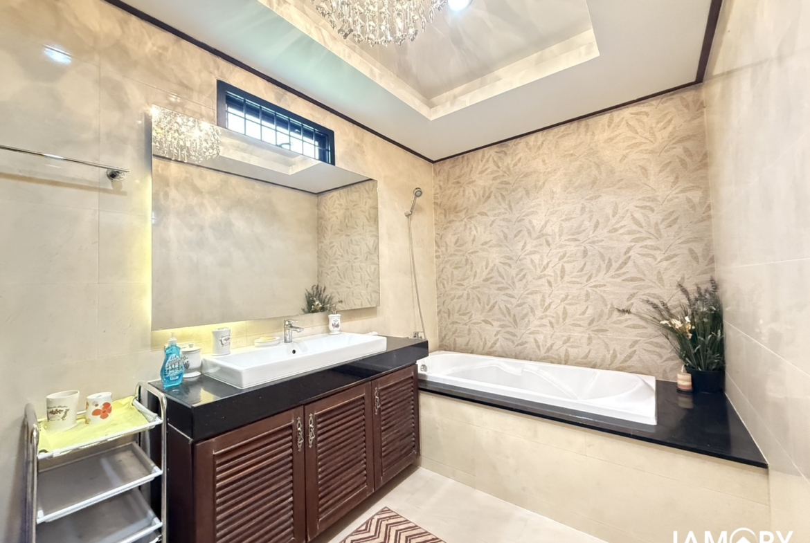 A beautifully designed private home offering generous space, comfort, and privacy. Located near Maryvit School Pattaya, this house is perfect for families seeking a high-quality living environment with premium features, including a relaxing Jacuzzi.