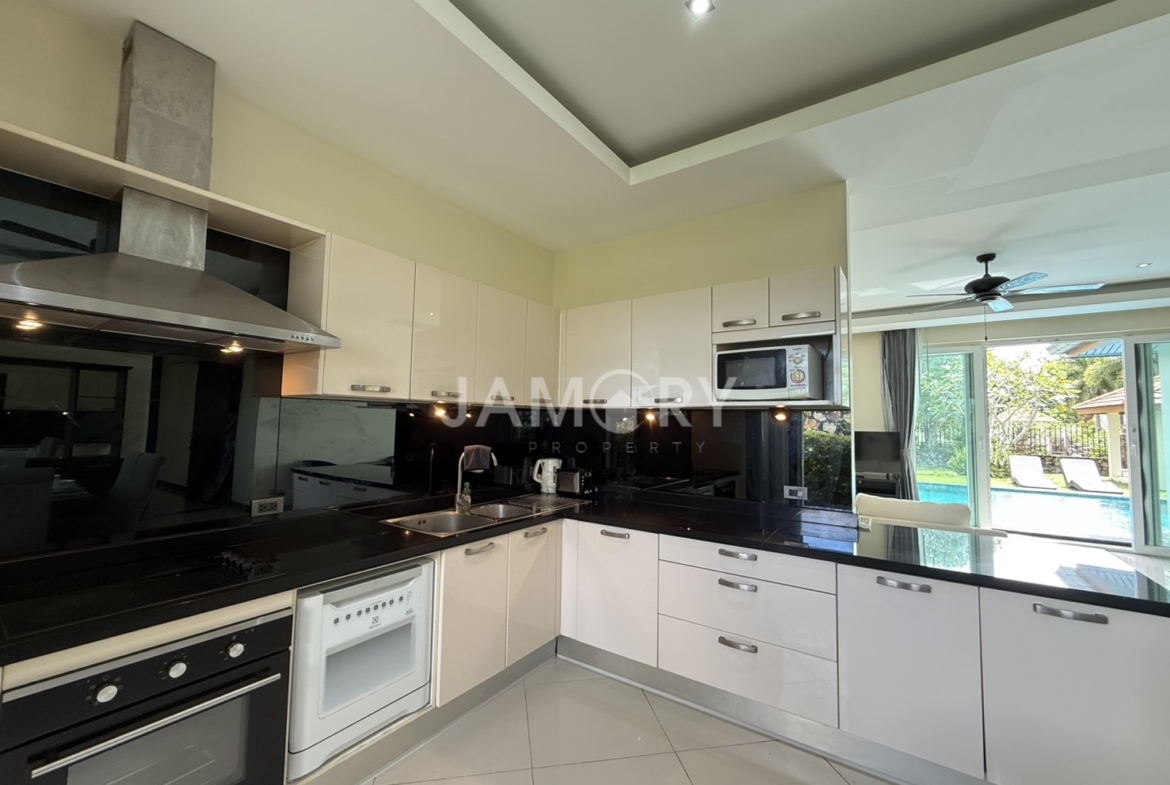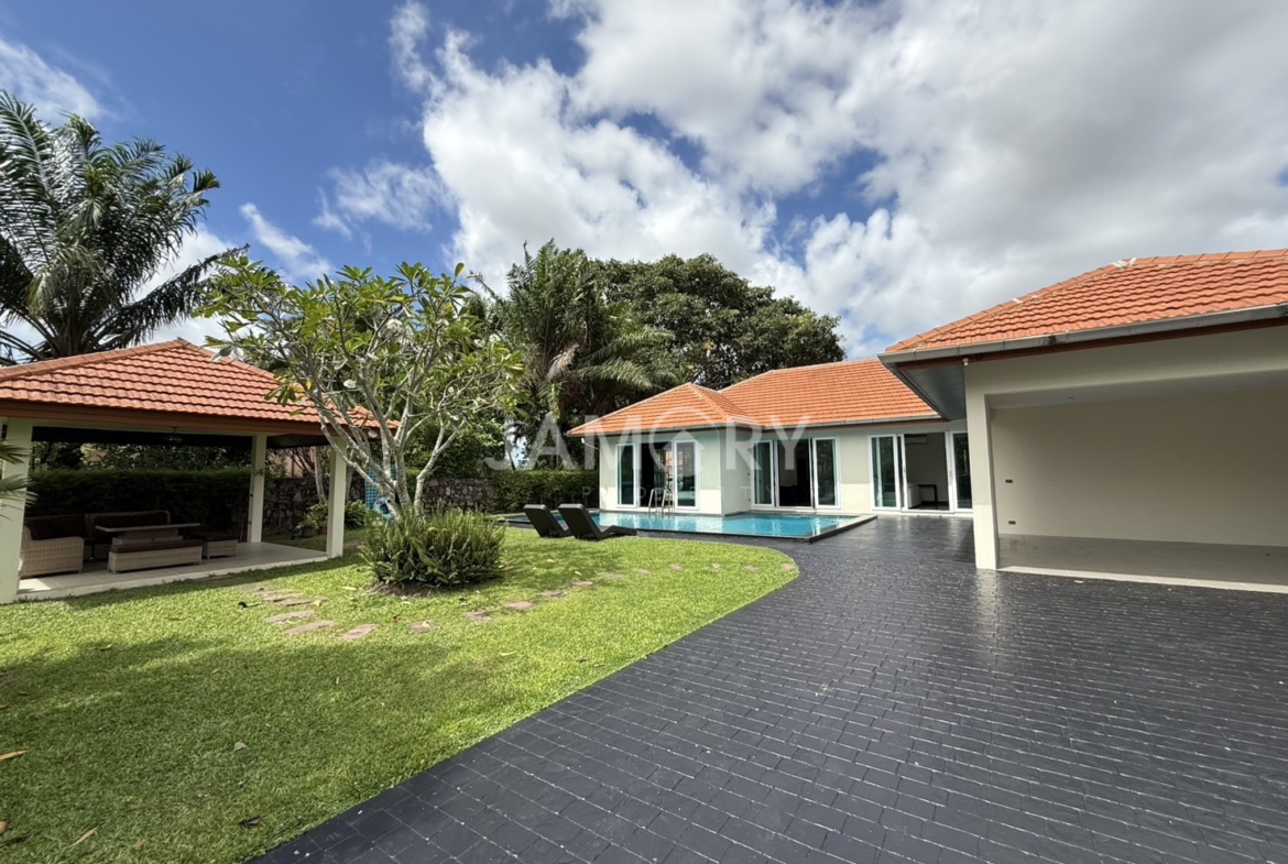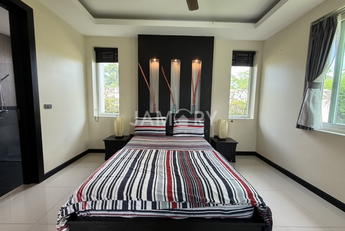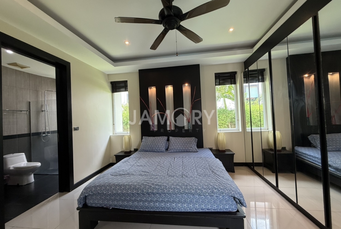 a luxury single-detached home development located in the eastern part of Pattaya City, near the Mapprachan Reservoir. Surrounded by beautiful nature, it is also close to Horseshoe Point Resort, the largest horse racing track in Southeast Asia. The project is also located just 20 minutes from Pattaya City, offering convenient transportation and living.