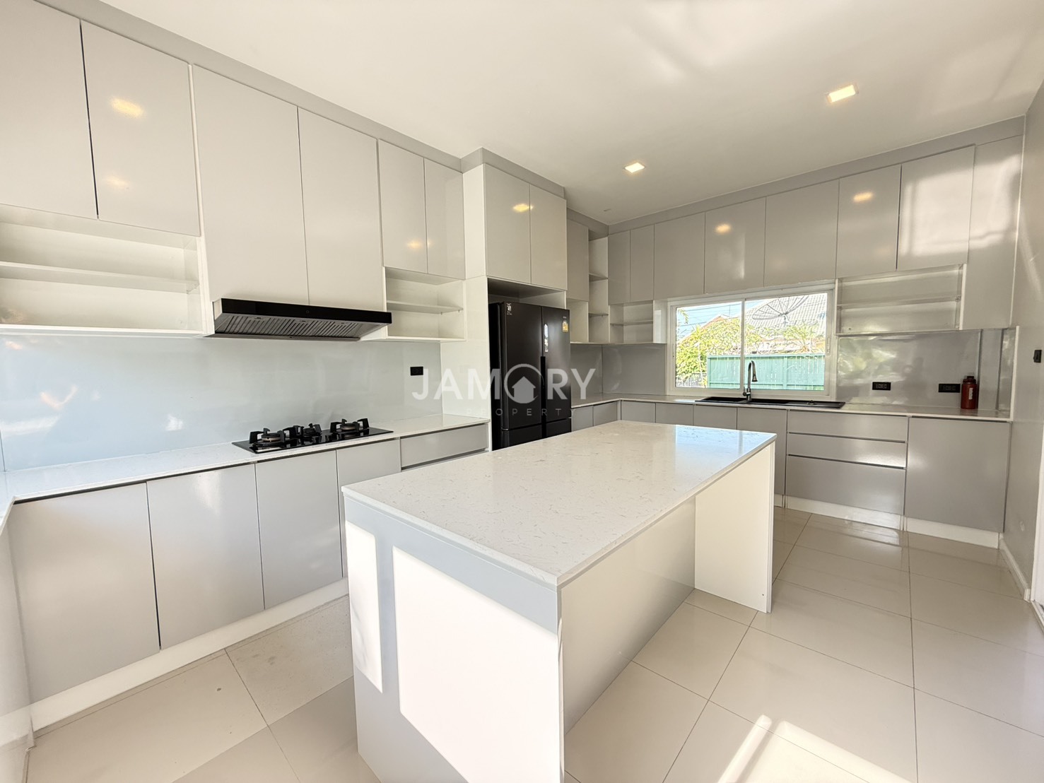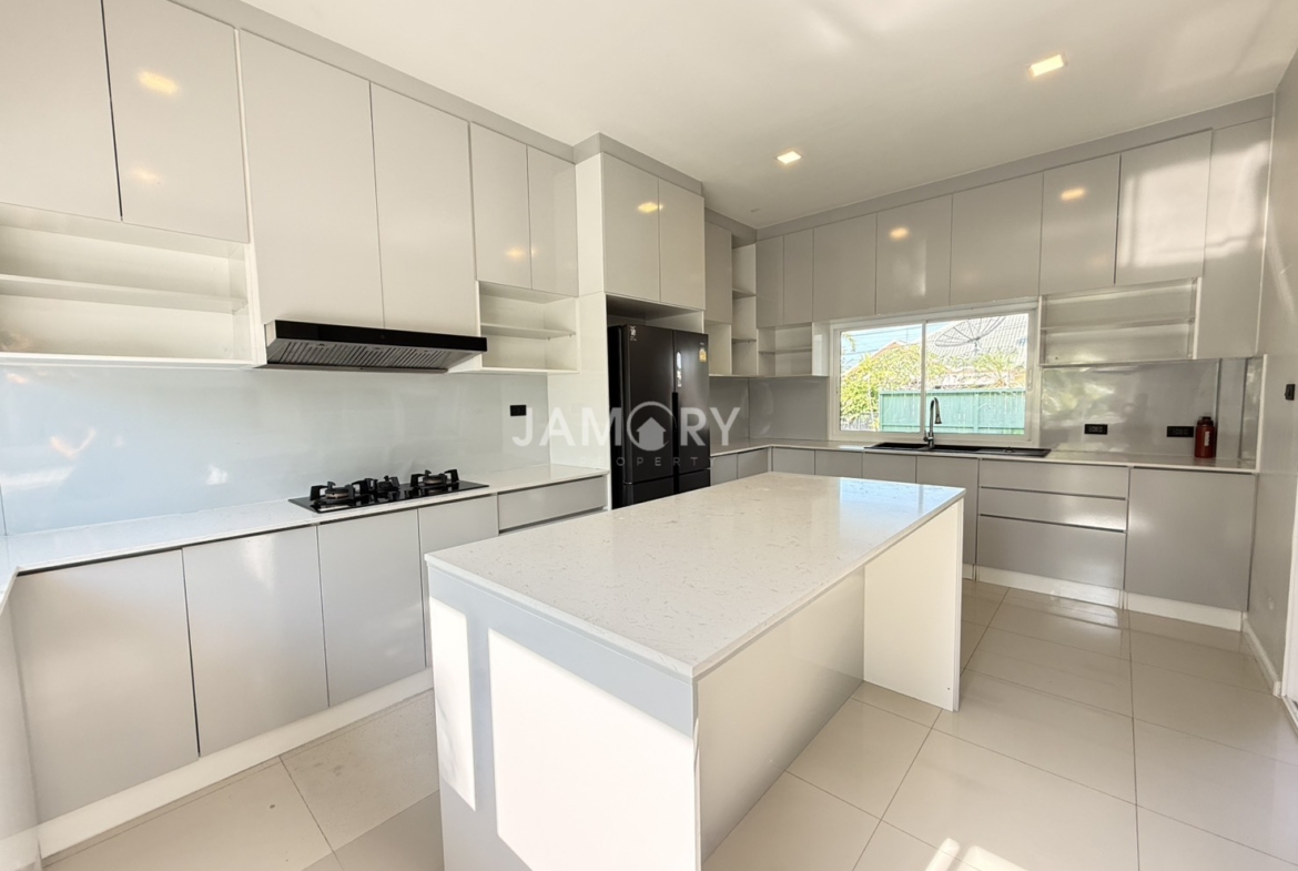 This house features 4 bedrooms, 1 Maid room , 5 bathrooms , a European-style kitchen, and is fully furnished, as seen in the photos.