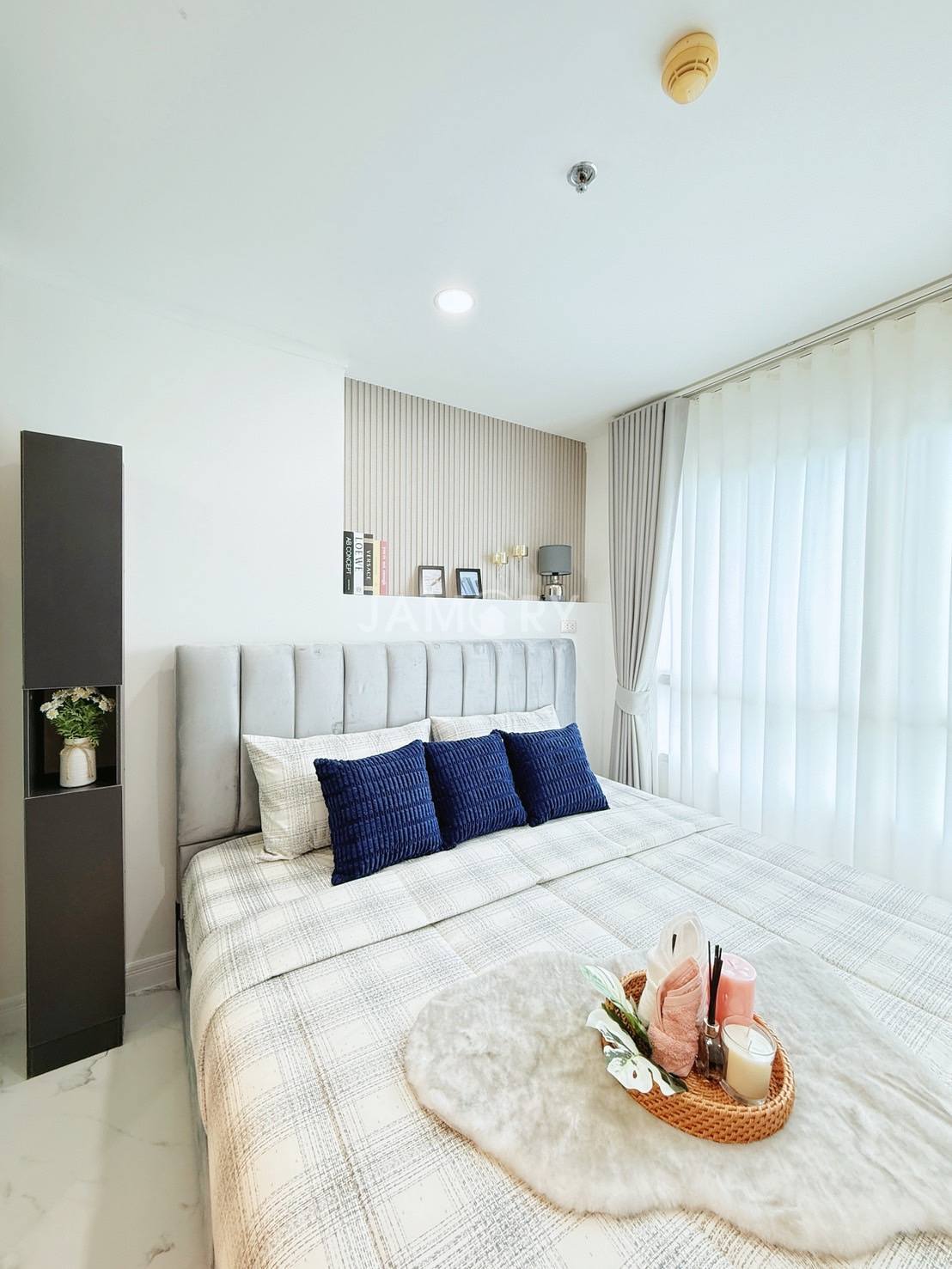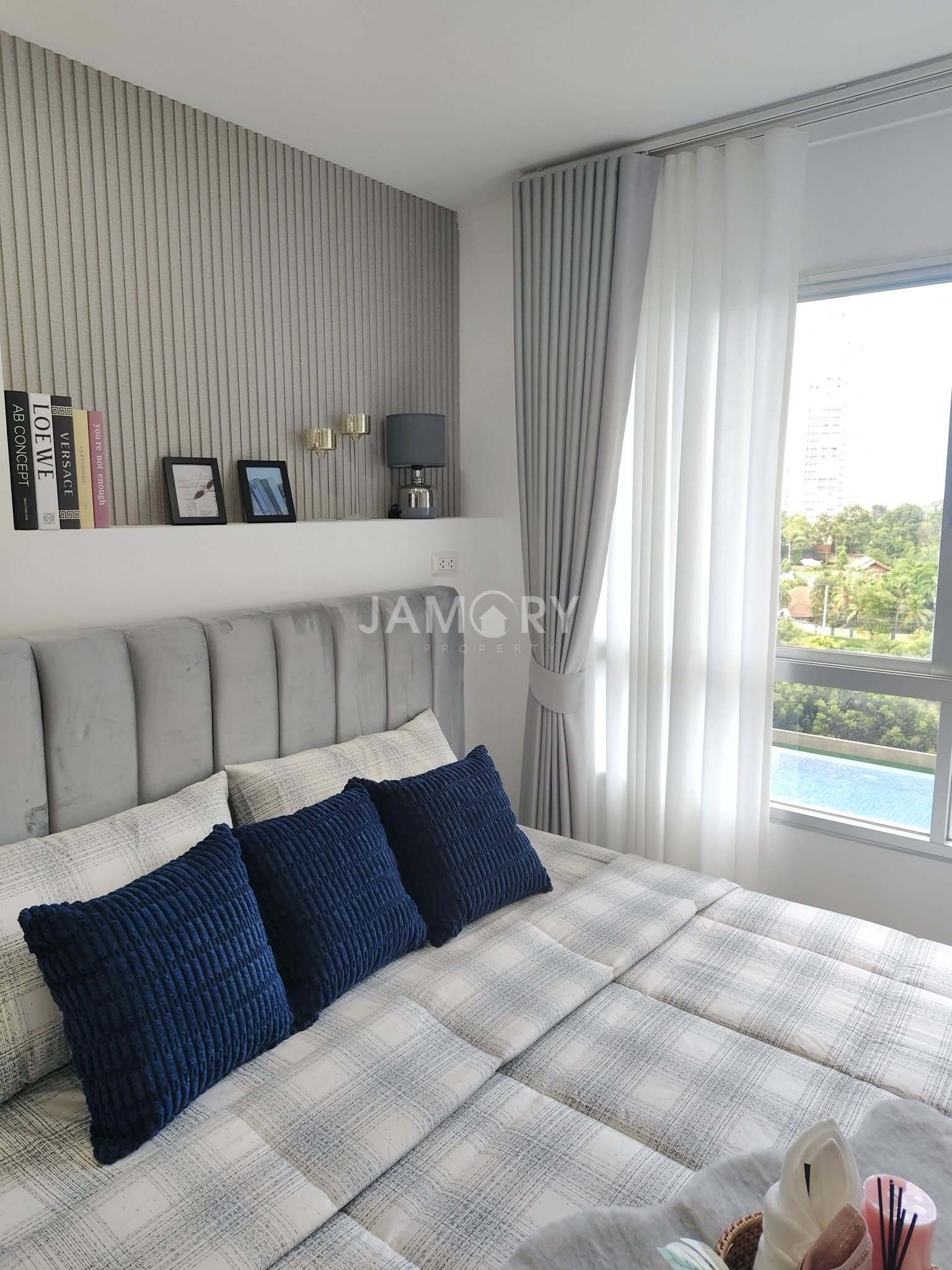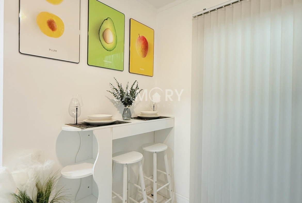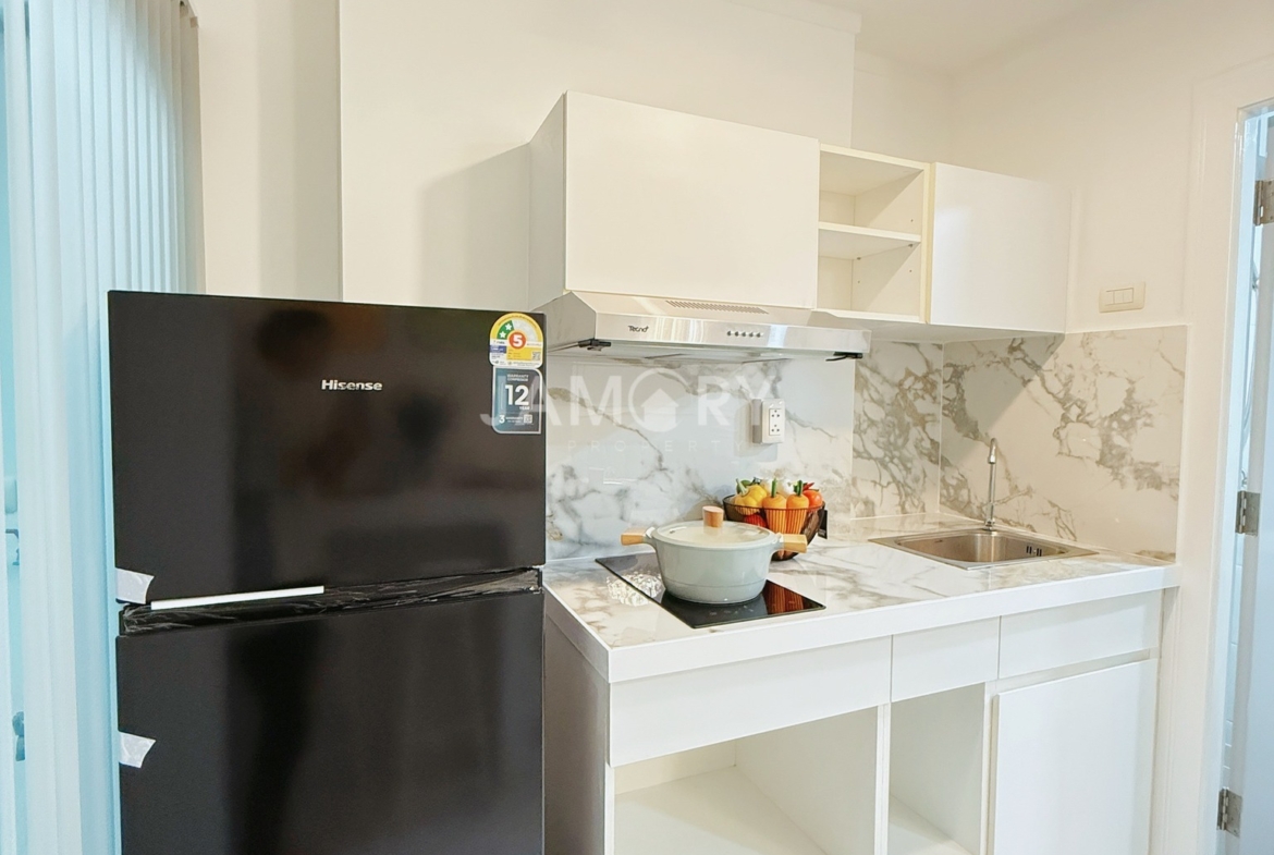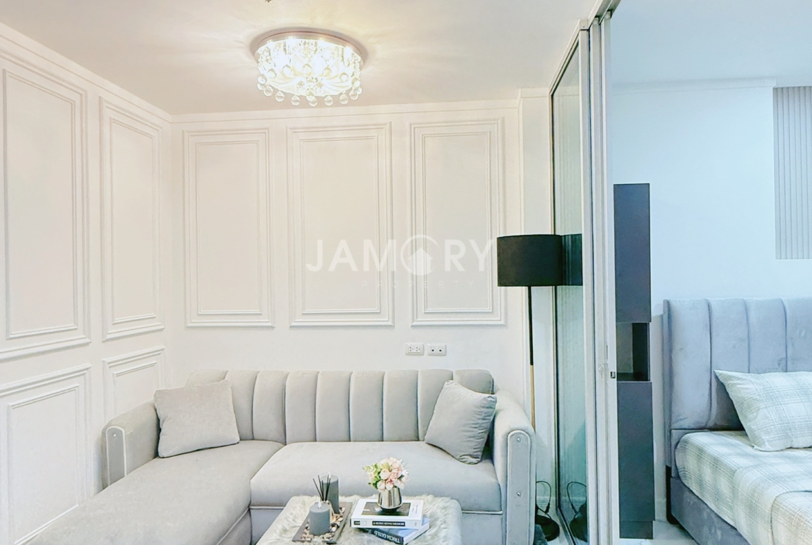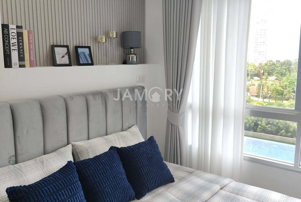 Lumpini Ville Naklua – Wongamat is located on Pattaya-Na Kluea Road, Bang Lamung District, Chonburi Province. The project covers approximately 12 rai (approximately 12 acres) and consists of Building A (20 stories, 532 units); Building B (28 stories, 790 units); and Building C (30 stories, 846 units). The interior is fully furnished with a living room set, bed, wardrobe, curtains, kitchen counter, dining table, and work desk. Appliances include a TV, air conditioner, refrigerator, microwave, and water heater. Amenities include a swimming pool, fitness center, library, garden, playground, parking, and more. Nearby attractions include North Pattaya Beach, Naklua Beach, Wong Prachan Beach, Wong Amat Beach, the Sanctuary of Truth, Ripley’s Believe It or Not, Central Pattaya Festival, Mini Siam, and Bangkok Pattaya Hospital.