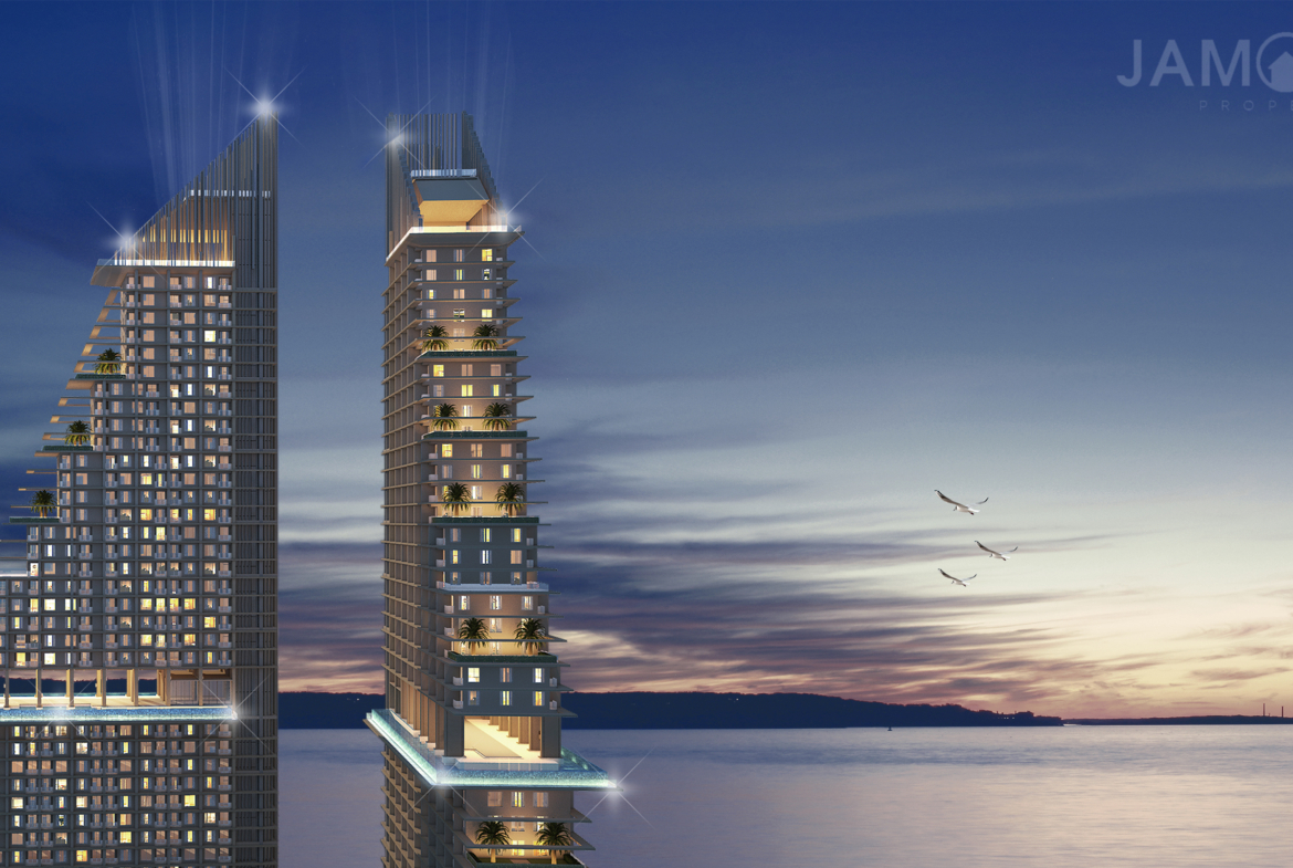 At the top of each tower will be a Sky Lounge restaurant and bar situated 153 meters high, providing a unique opportunity to enjoy views and an atmosphere reminiscent of paradise. Each tower will feature a 60-meter Infinity pool on the 27th floor, offering breathtaking panoramic views of the surroundings. Additionally, the buildings will be equipped with nine beautiful garden terraces. The complex will also house a luxurious shopping center with commercial space of 10,000 sq.m.