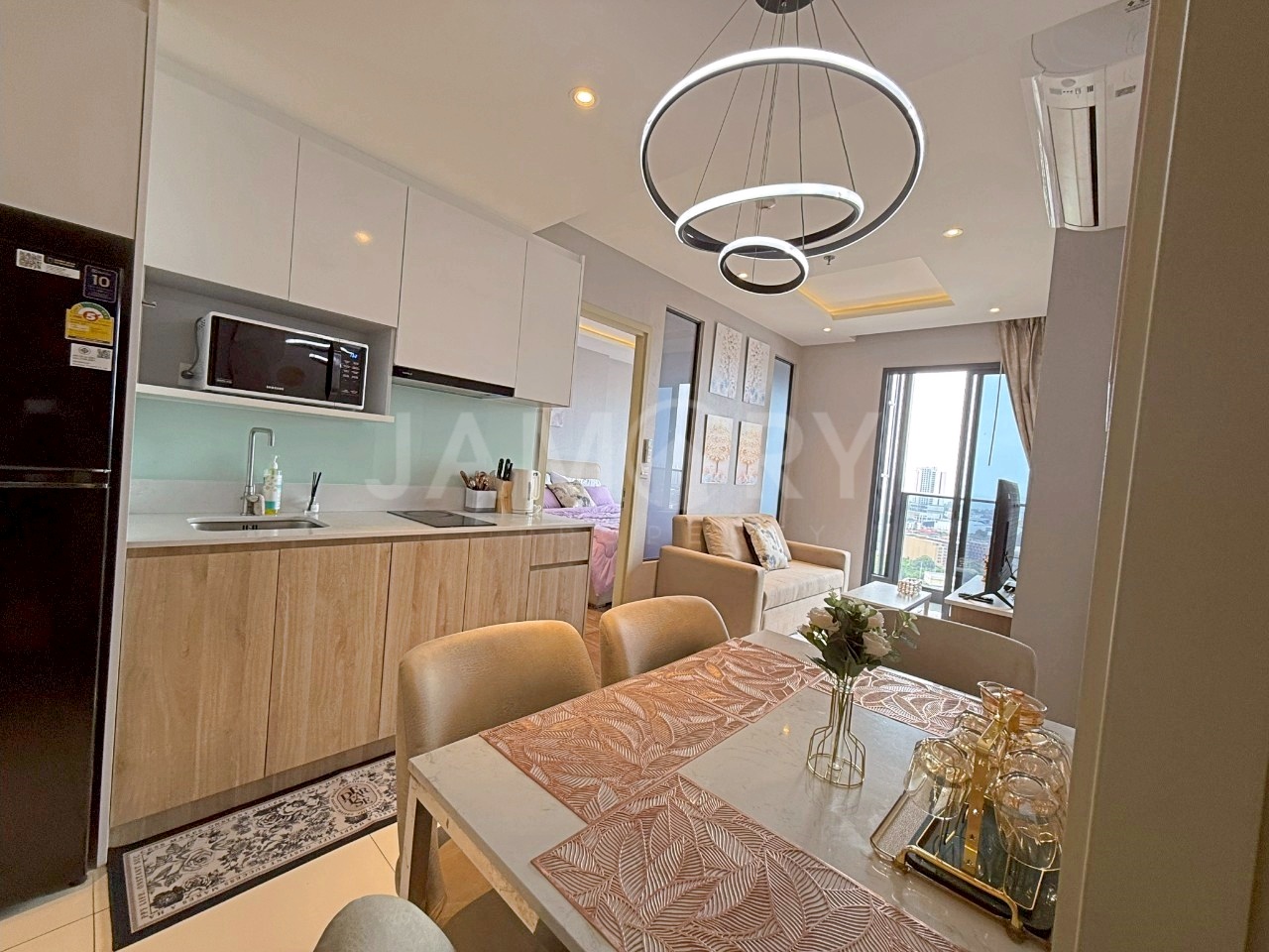 Complete electrical appliances, TV, refrigerator, washing machine, microwave, kettle, water heater, electric stove, 2 air conditioners, kitchenware, complete