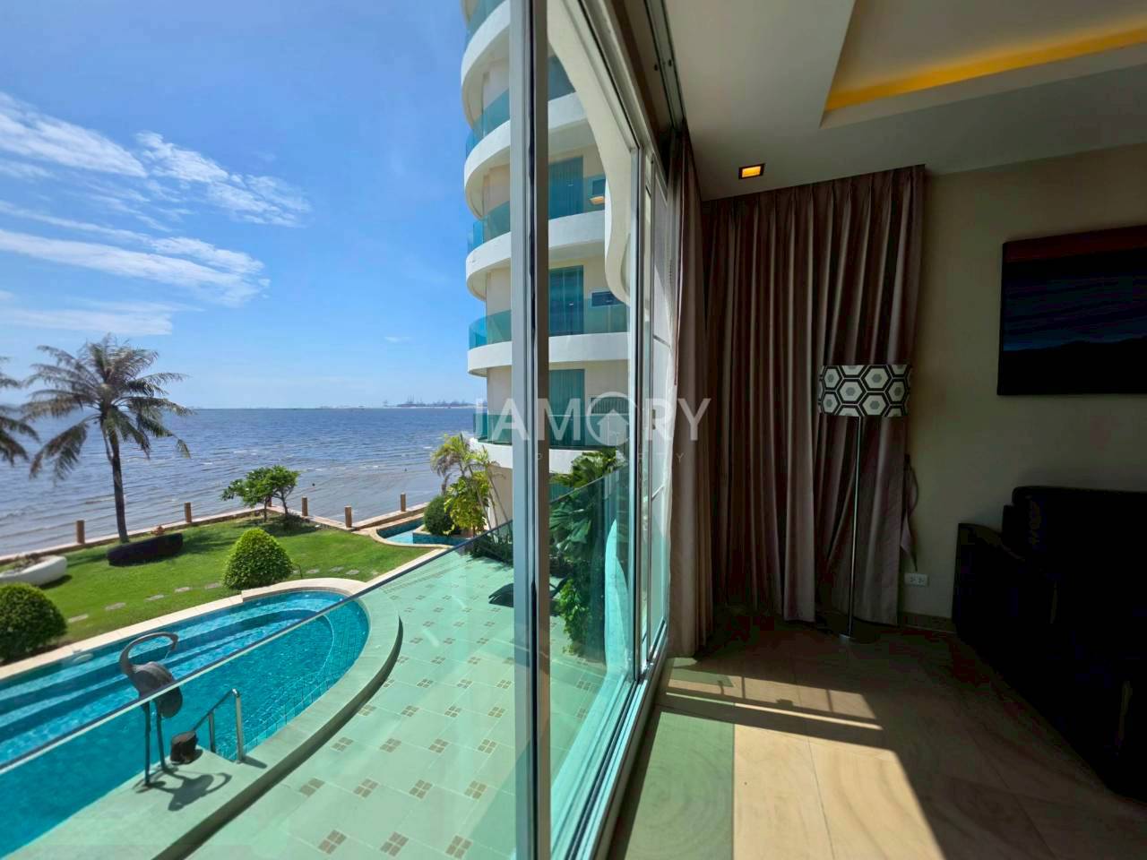 Paradise Ocean View allows everyone to own a true paradise on earth in Pattaya, with investment opportunities in beachfront condominiums. That comes with a beautiful atmosphere and the highest quality of life. Through a unique and luxurious design style. The perfect blend of beach life and modernity. There is a full range of facilities such as Infinity Edge Pool, Fitness Center, Sauna Room, and a 24-hour security system. To allow all family members to enjoy the happiness and have a good time living within the project.
