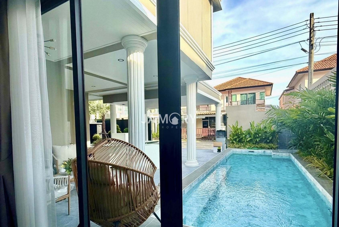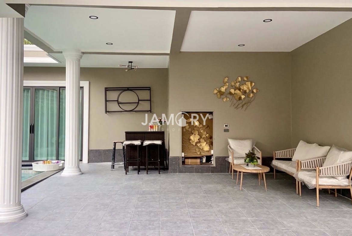 Experience modern tropical living in this beautifully designed 4-bedroom pool villa located in the peaceful and secure community of TW Garden Hill, Jomtien. This fully furnished home is perfect for families or long-term residents seeking comfort, privacy, and convenience.