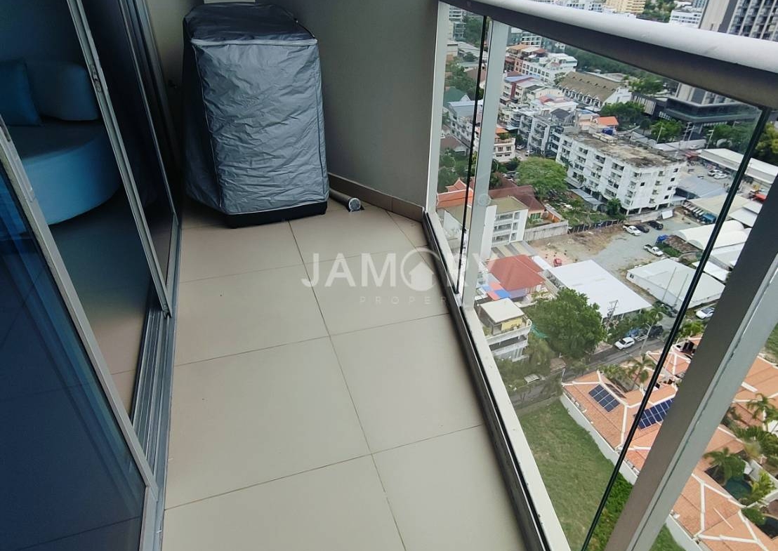 The Sands Condominium is a 27 floor new development of completely modern style and build has focused on quality and design. Located next to Pratamnak Beach in the popular city of Pattaya, the condo building is centrally located but also offers a peaceful atmosphere surrounded by palms and overlooking a beautiful secluded beach. Walk into the five-star lobby with reception and then enjoy the large pool and jacuzzi, pool bar and restaurant, the fitness center with sauna and more. The high-powered elevators will deliver you to your room where you can relax in your beautiful and new studio or condo unit.
