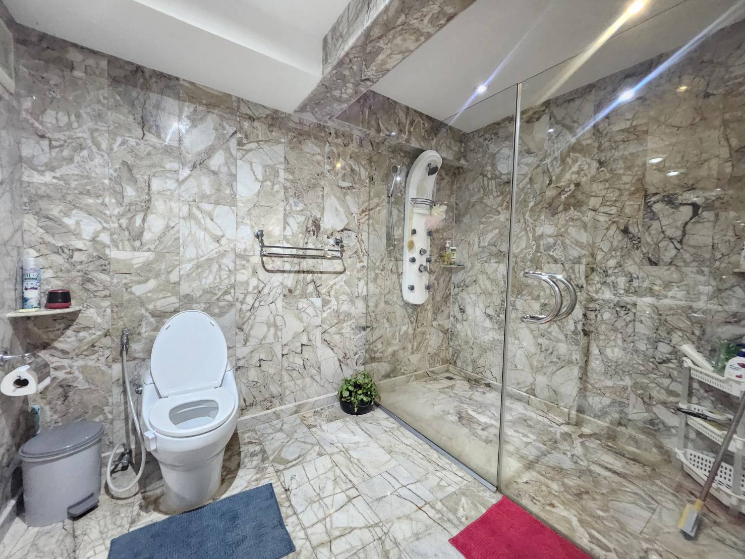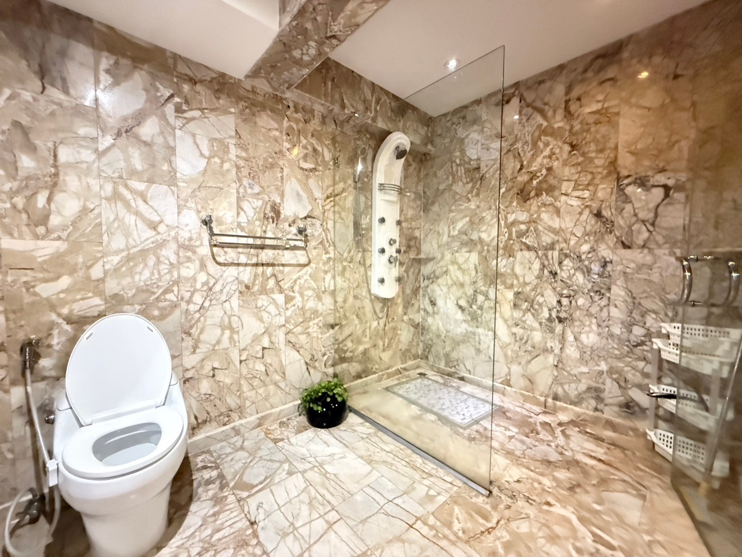 Pre-installed adjustable hot-water heater in every bathroom.