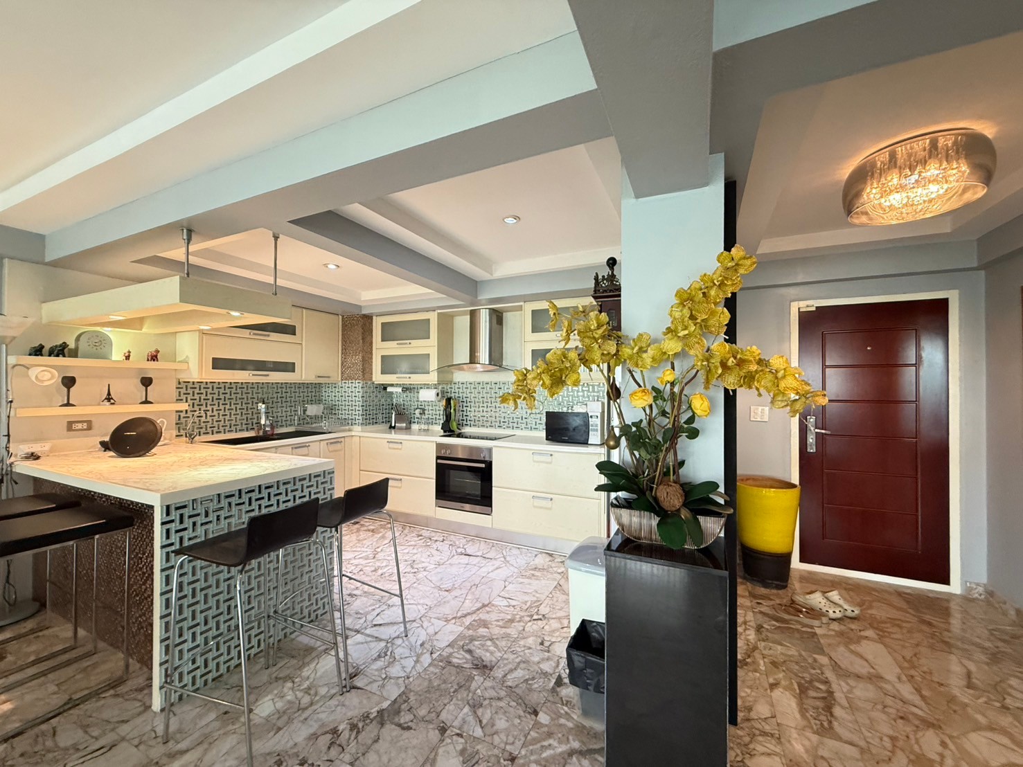 Built in “Thai” style kitchenette with a single-bowl, stainless-steel sink.