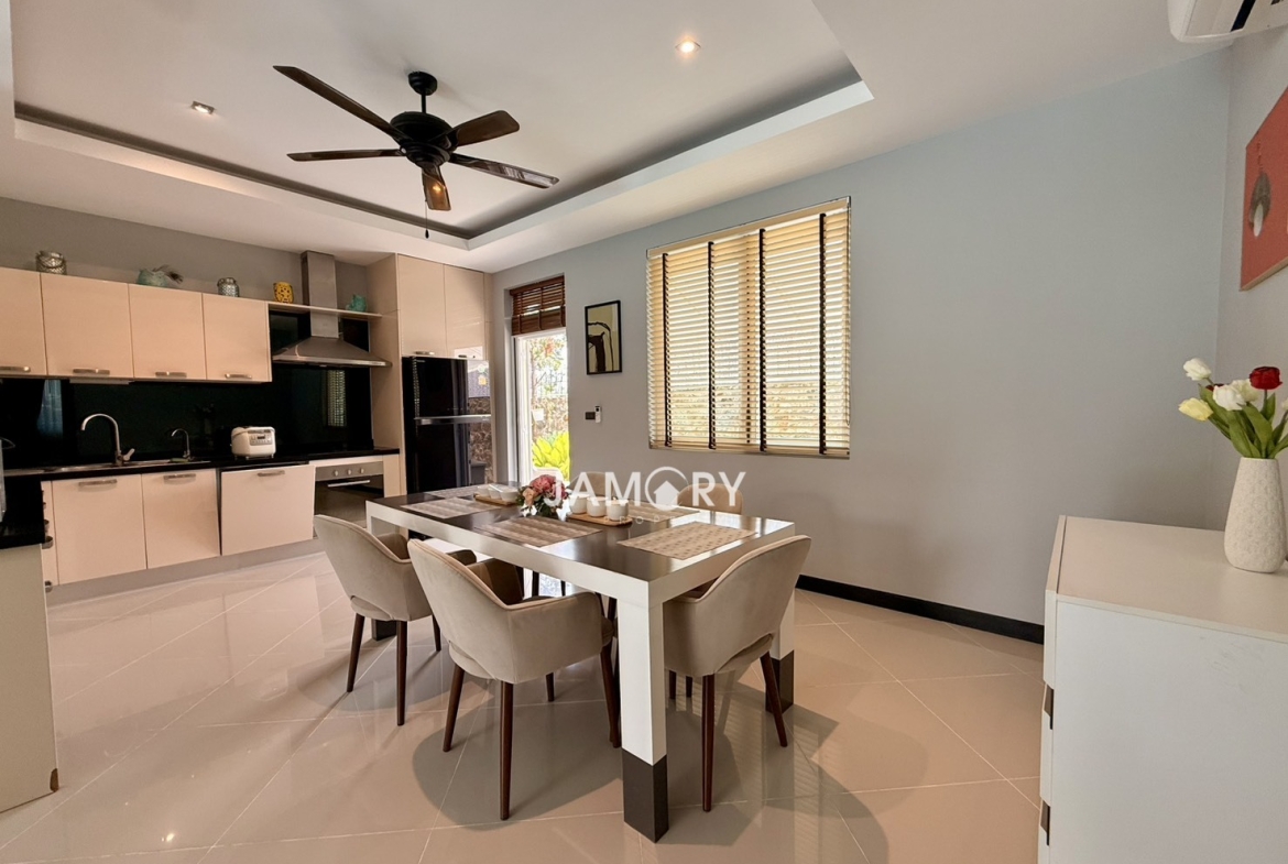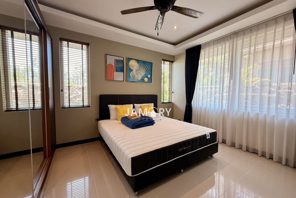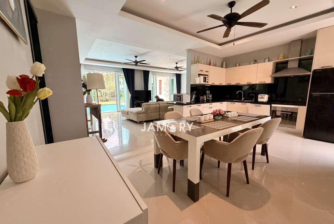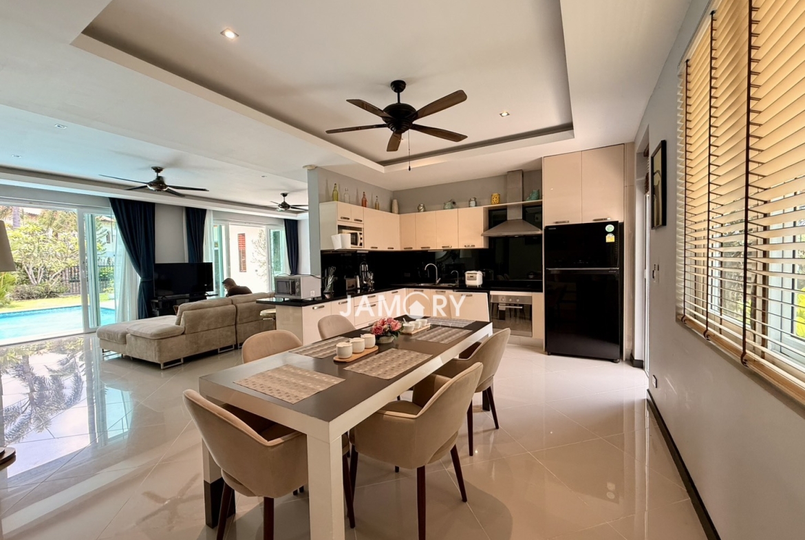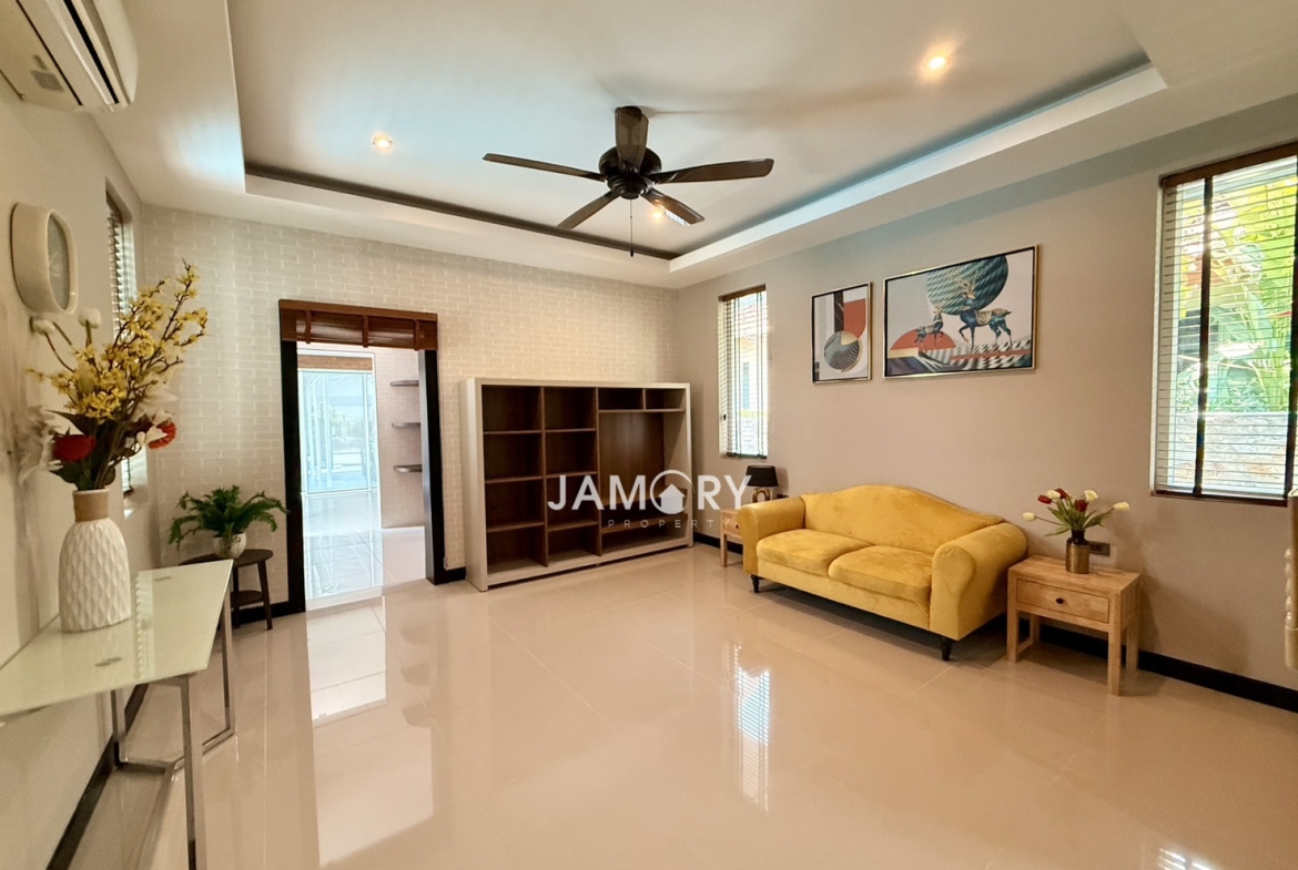 Beautiful private pool villa located in the peaceful Whispering Palms village. Perfect for families or long-term living, offering privacy, comfort, and a relaxing environment just minutes from Pattaya City.
